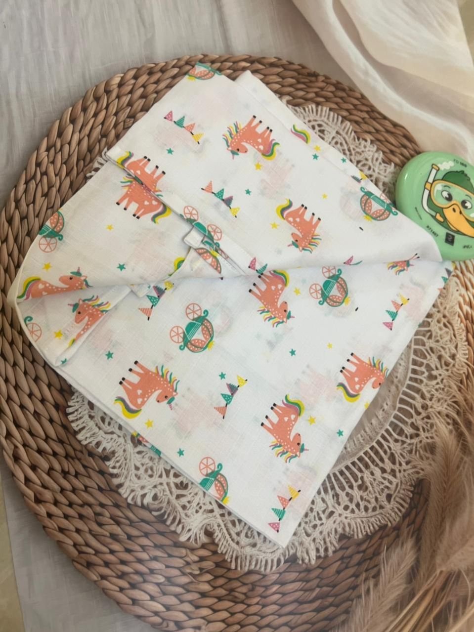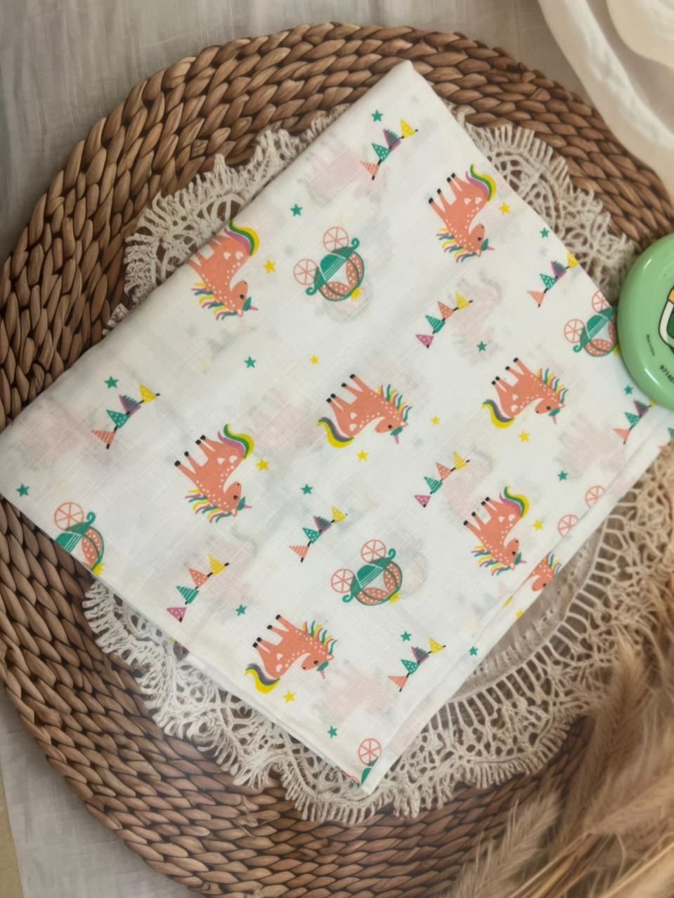 Unique Unicorn printed Swaddle made with 100% organic muslin cotton best for baby wrap. And also use it as a bath towel. Light weight and comfortable to carry anywhere.